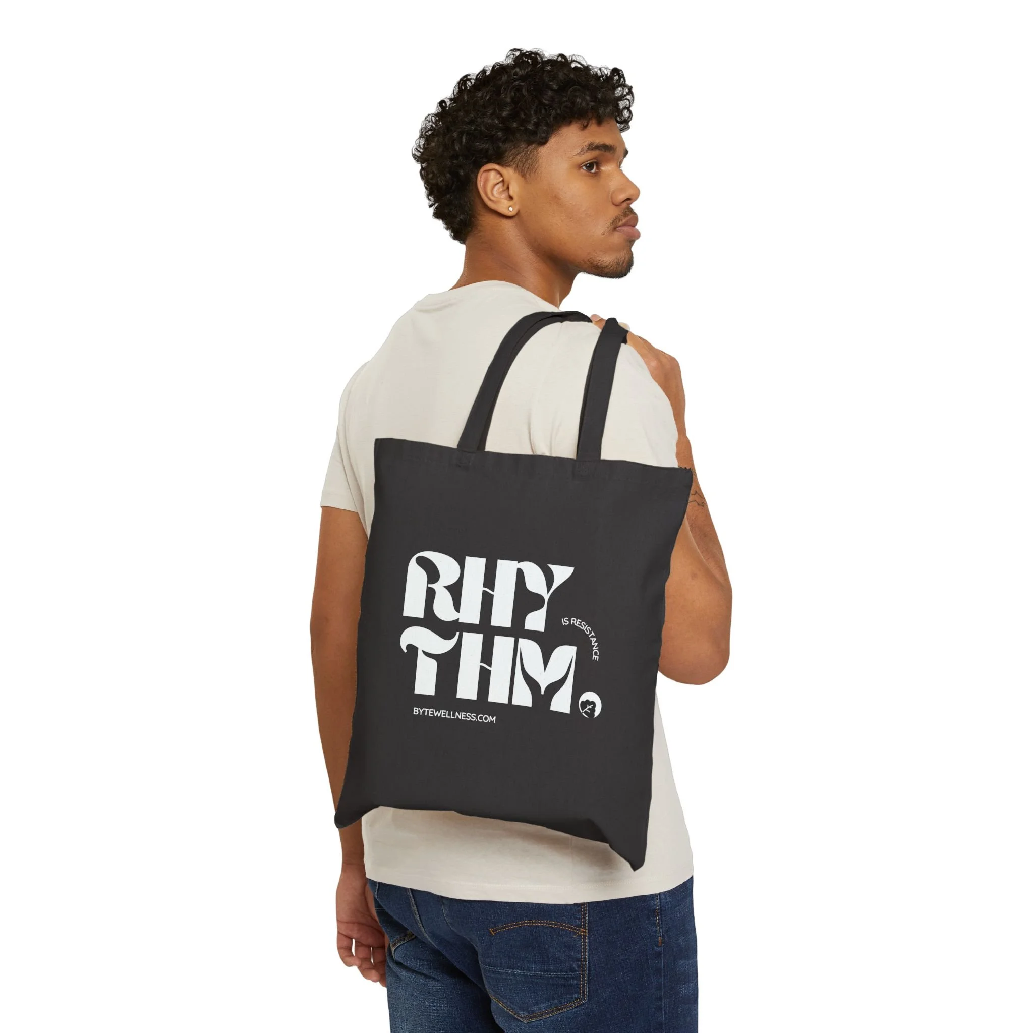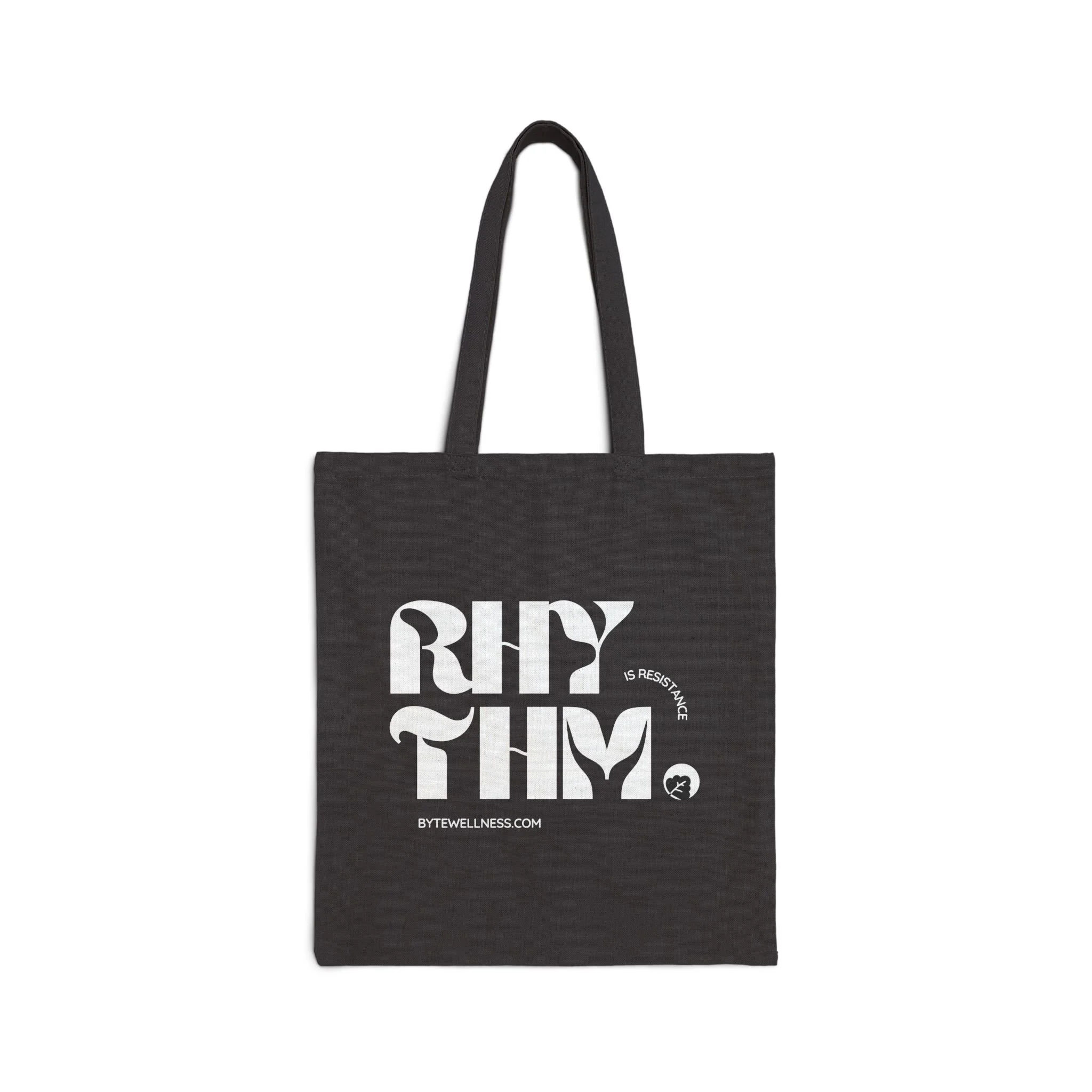 Black Rhythm + Black-Owned Typography Tote Bag | Retro Stencil Music Design, Black-Owned Accent