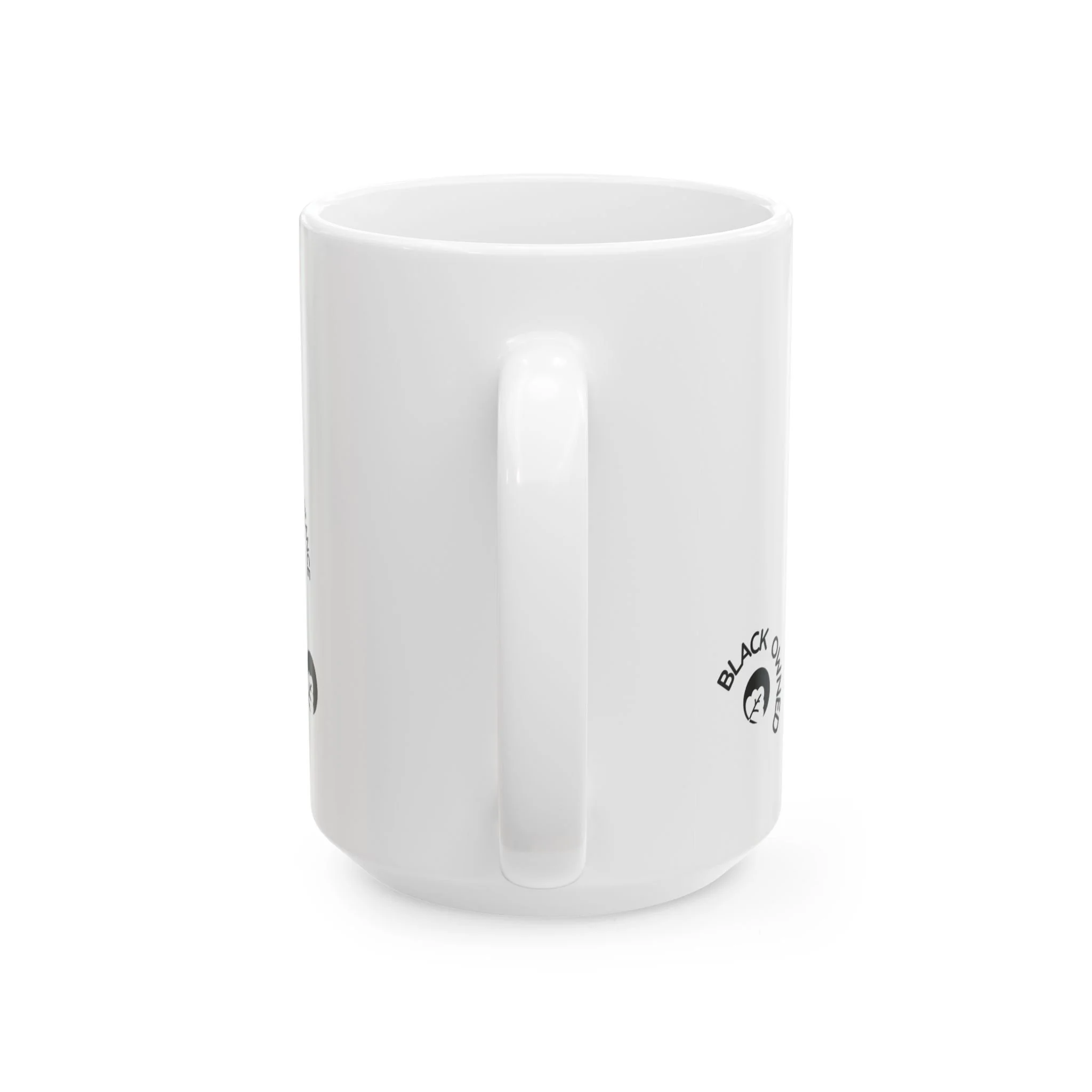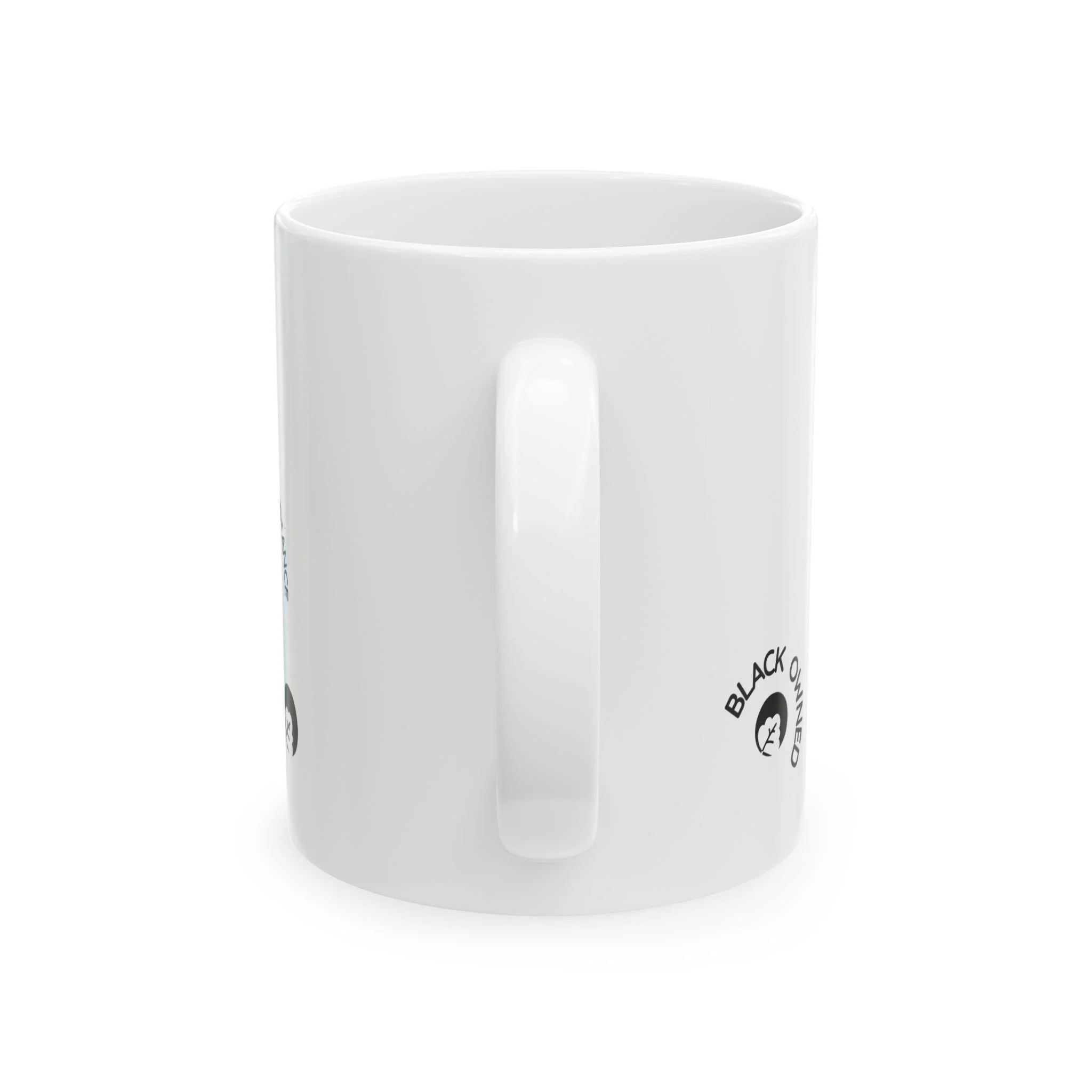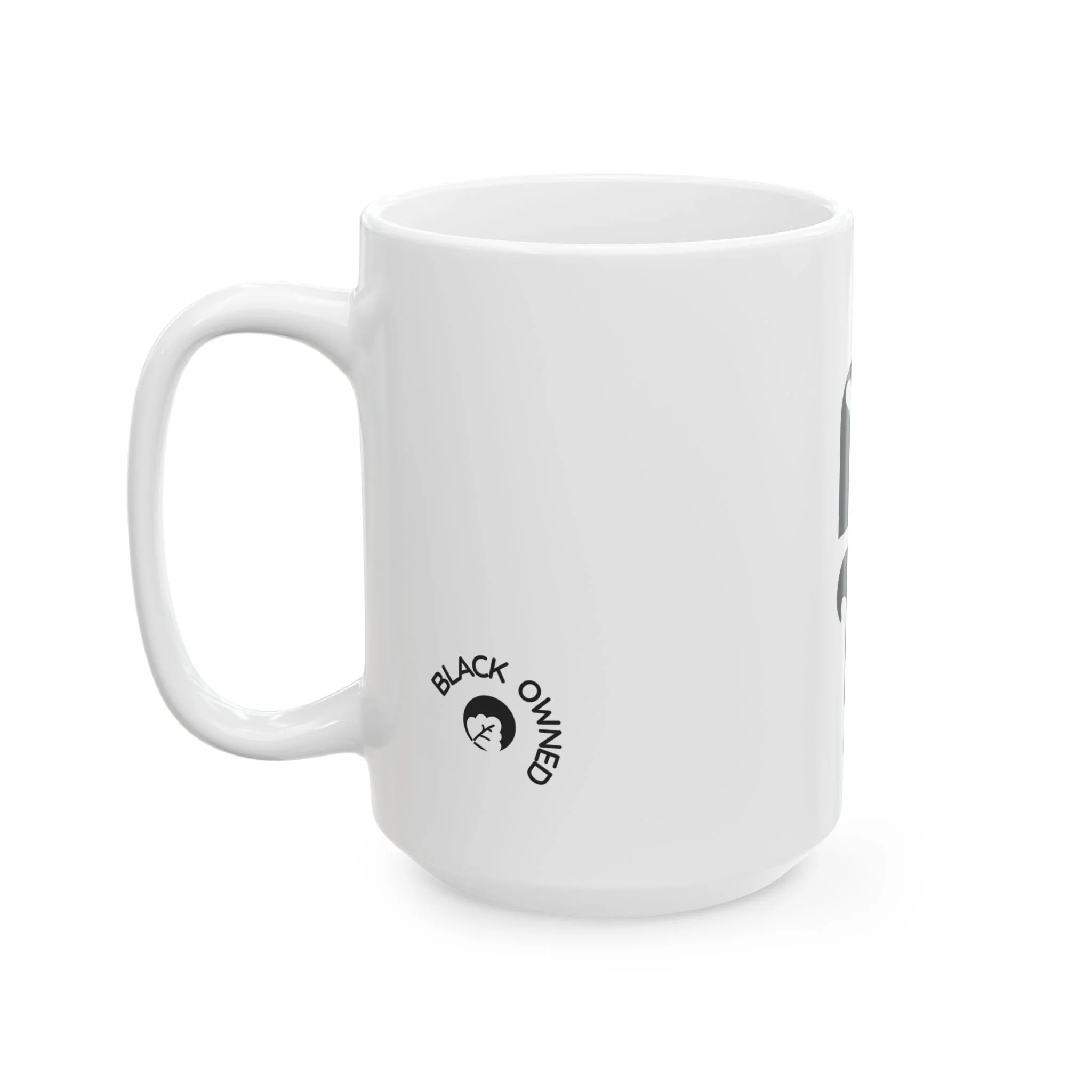 Warm mornings and focused afternoons start with this glossy ceramic mug. Bold, retro-inspired black typography wraps the white surface, making a statement without shouting. The comfortable C-handle fits easily in hand while bright, crisp printing keeps the letters sharp through daily use. Use it for coffee between meetings, tea during creative sessions, or as a calm companion on slow weekend mornings — its sturdy ceramic body and shiny finish feel simple and reliable, like a trusted ritual in your day.