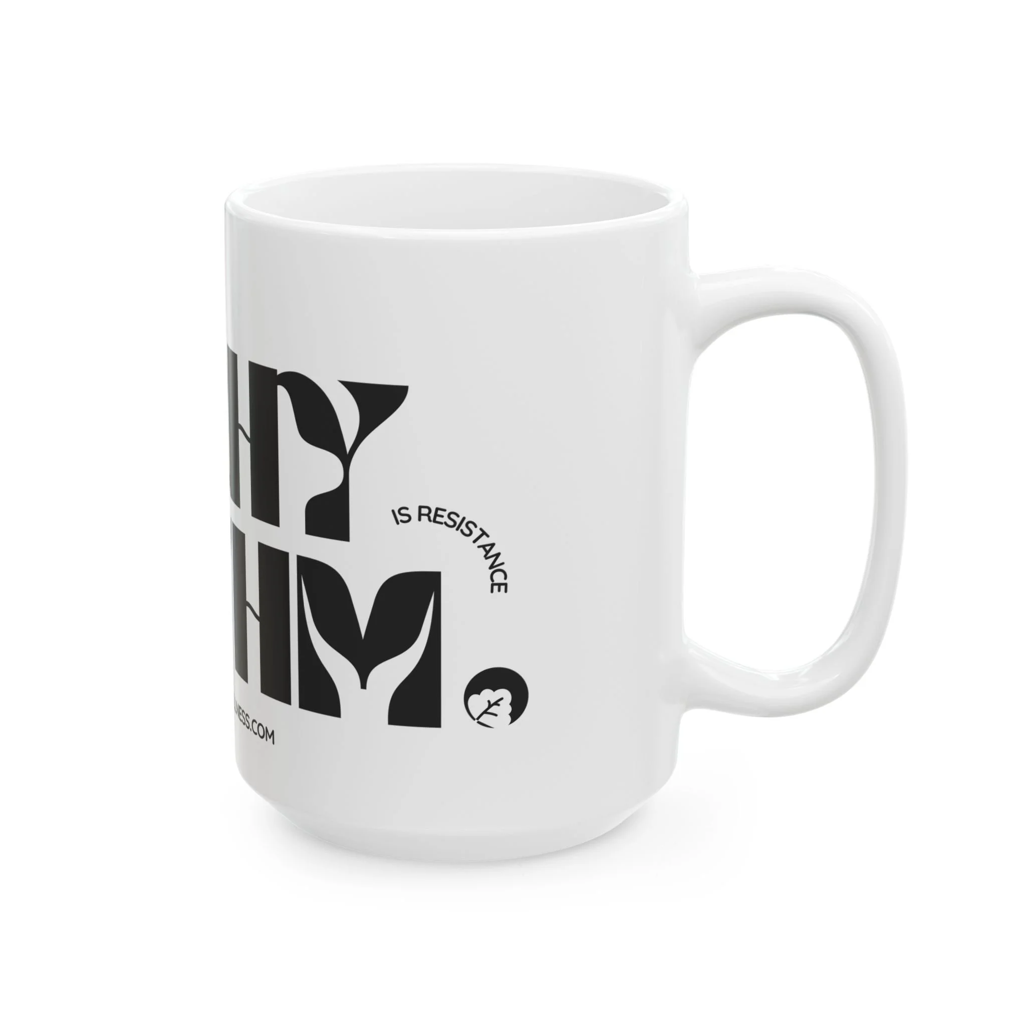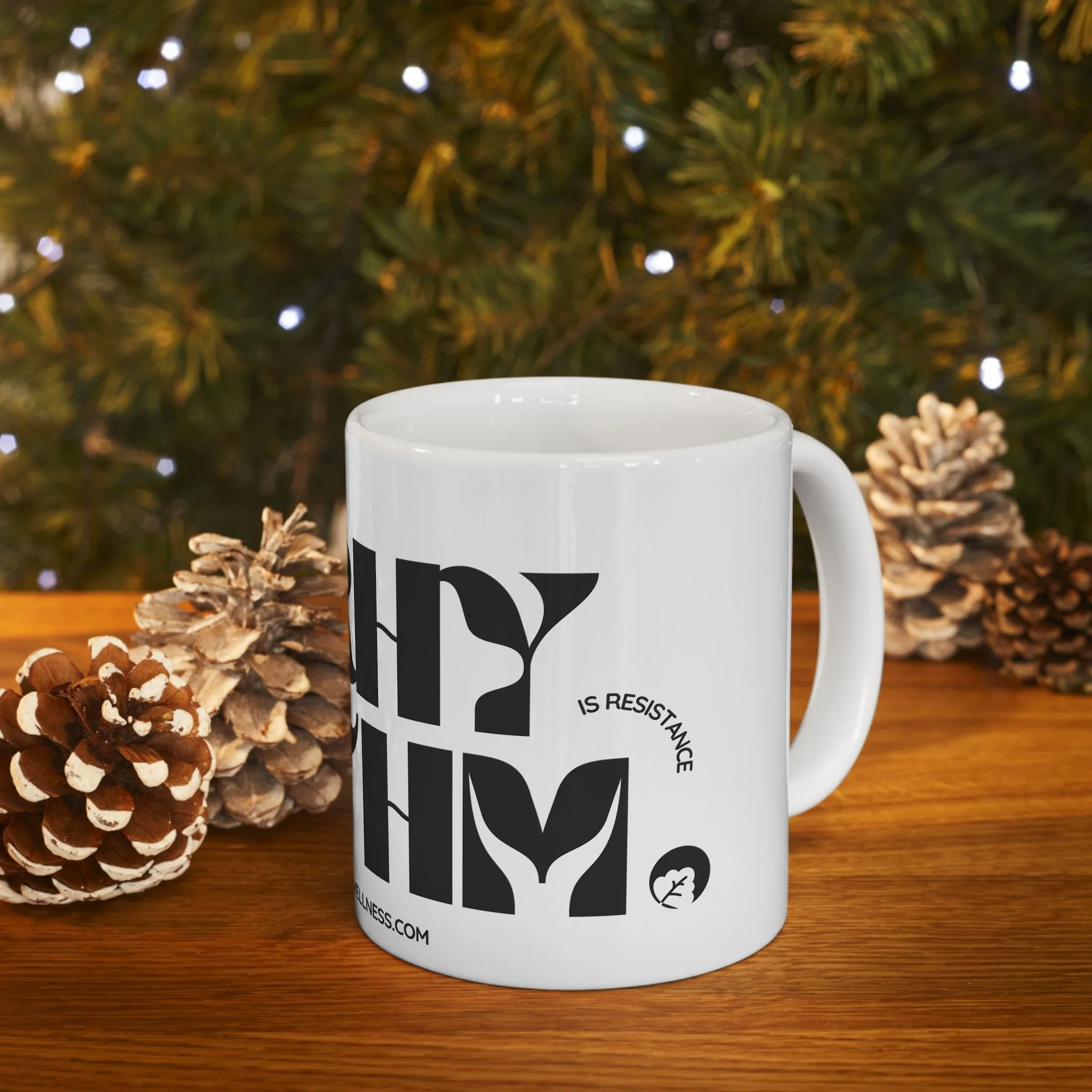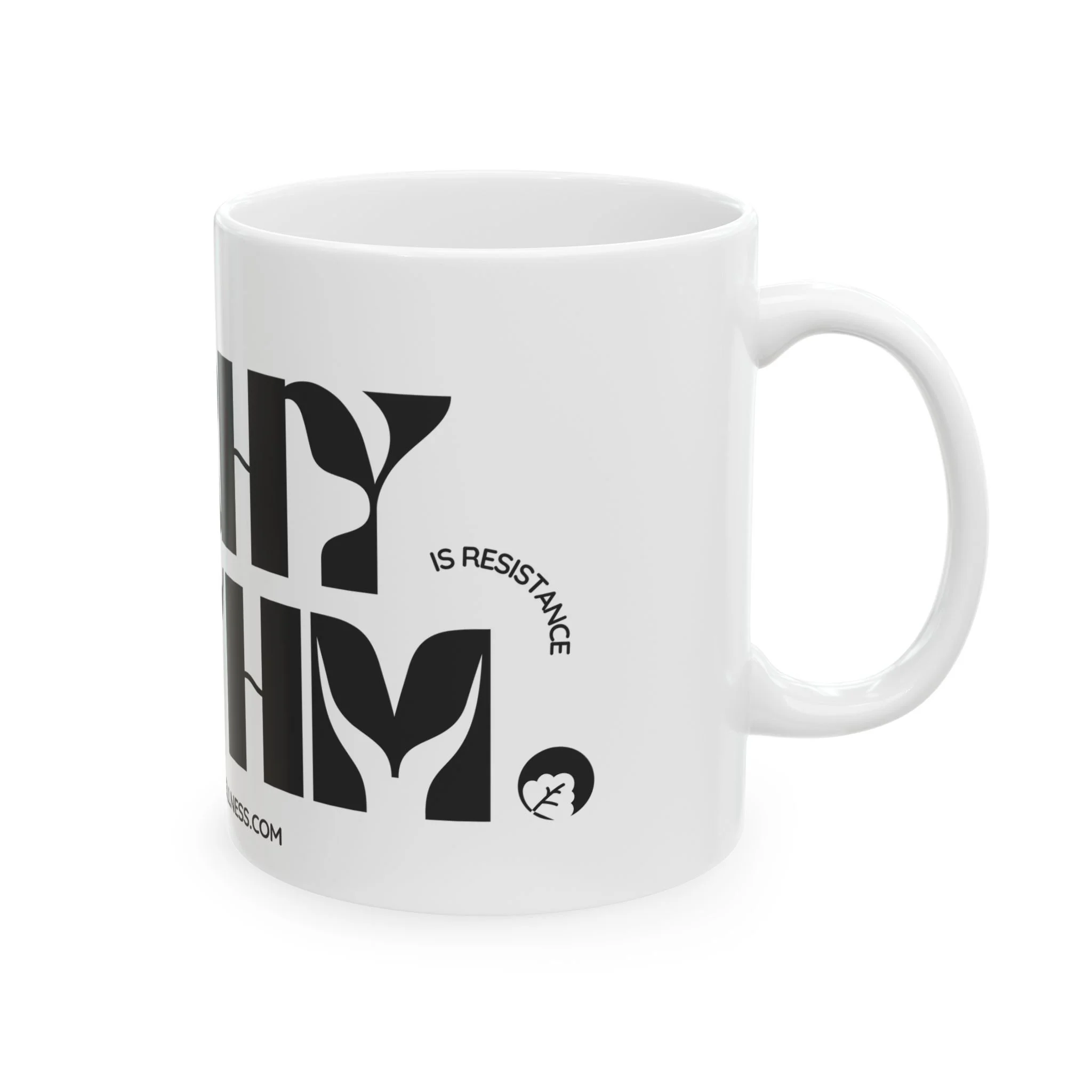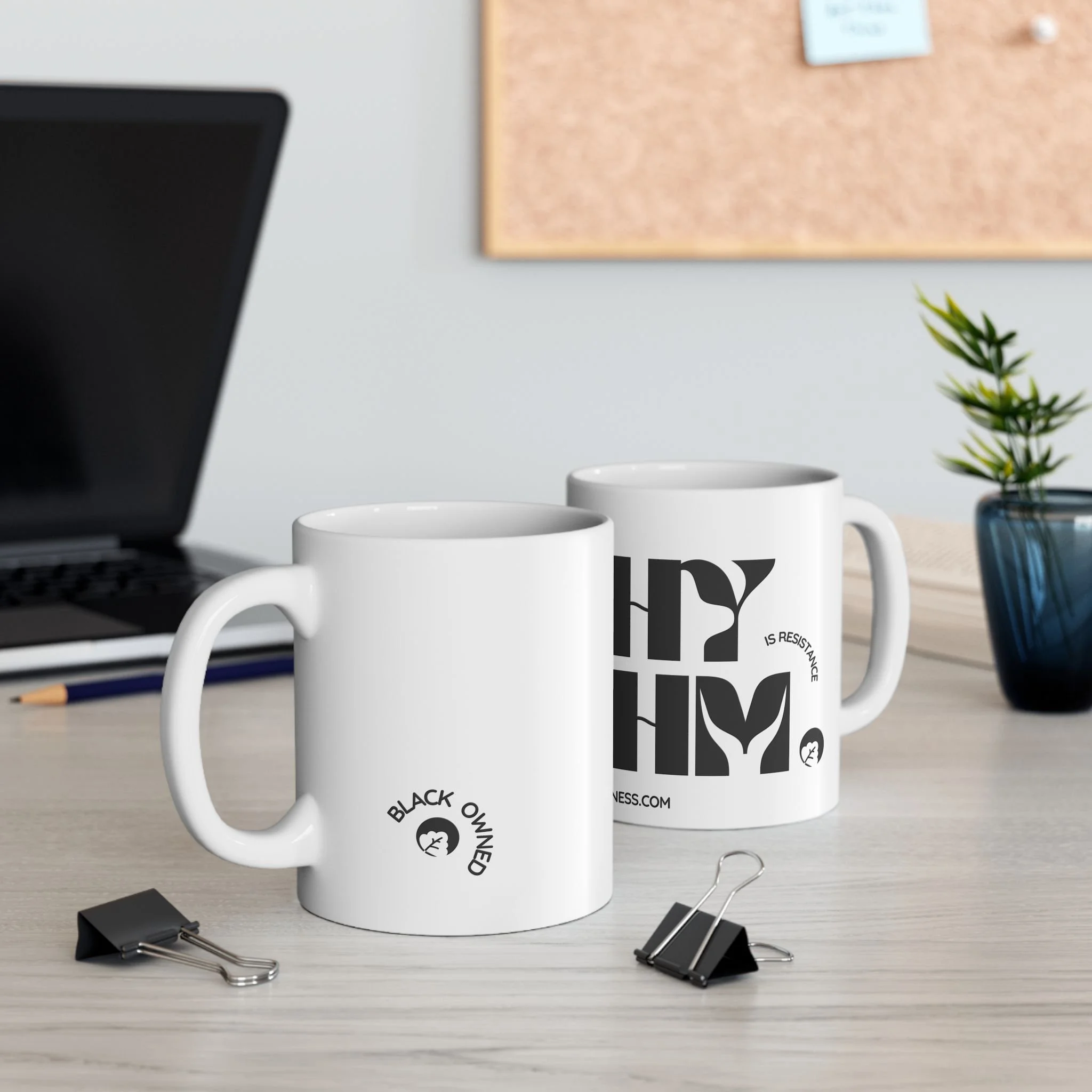 Rhythm Is Resistance + Black-Owned Ceramic Mug — Bold Retro Typography Coffee Cup (11oz, 15oz)